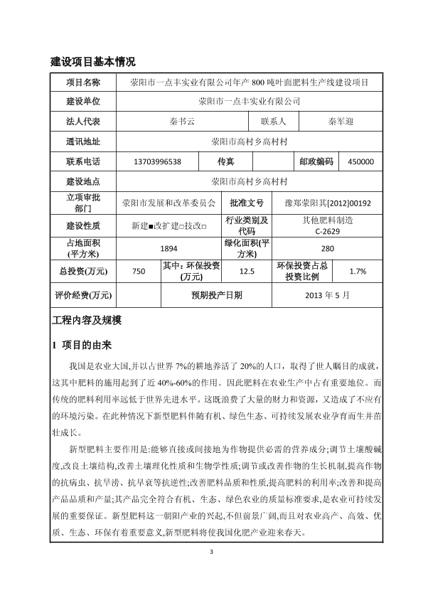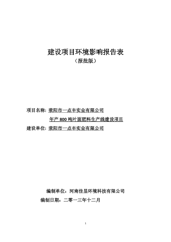 荥阳市高村乡-荥阳市一点丰实业有限公司年产800吨叶面肥料生产线建设项目(1)1940 公开