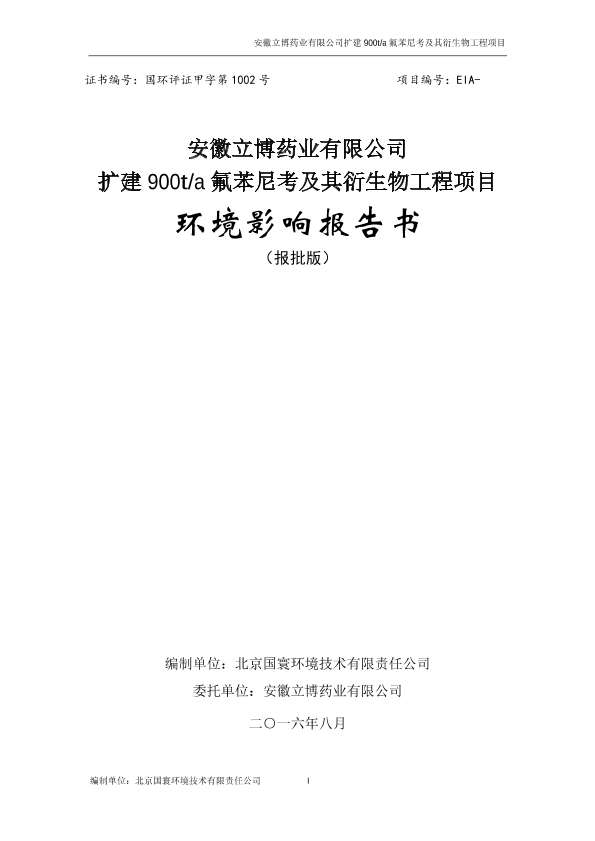 2016年安徽立博药业有限公司扩建氟苯尼考及其衍生物工程项目a62407a4986.pdf