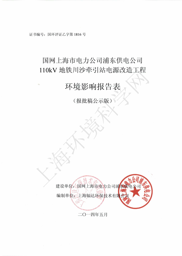 3、110kV地铁张杨站电源改造工程环境影响评价8464