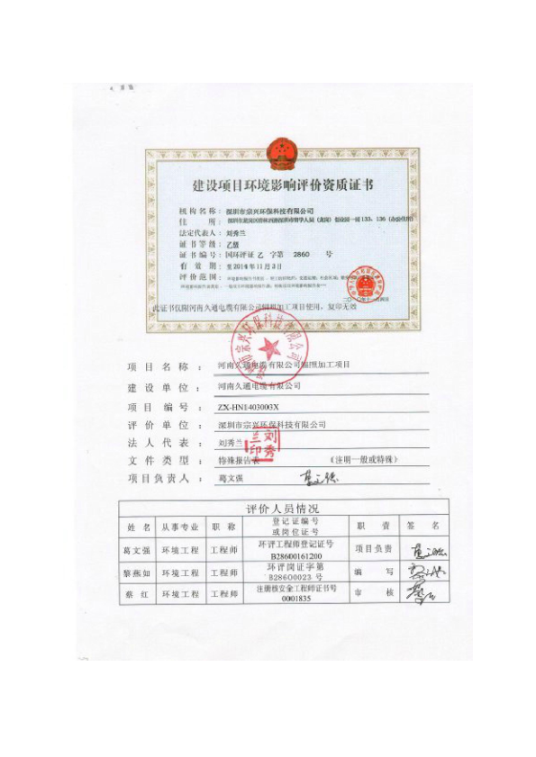 1、河南久通电缆有限公司河南久通电缆有限公司辐照加工项目