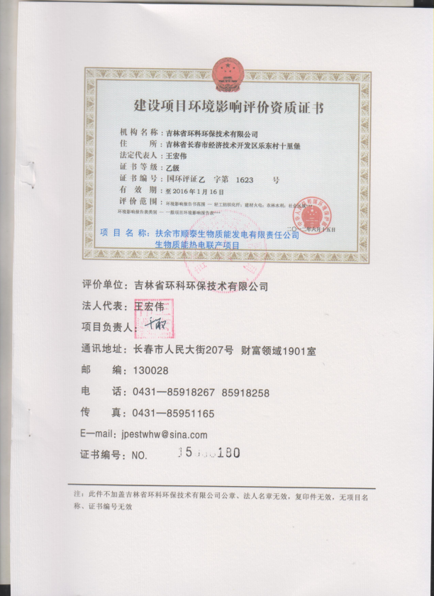扶余市顺泰生物质能发电有限责任公司生物质能热电联产项目1889