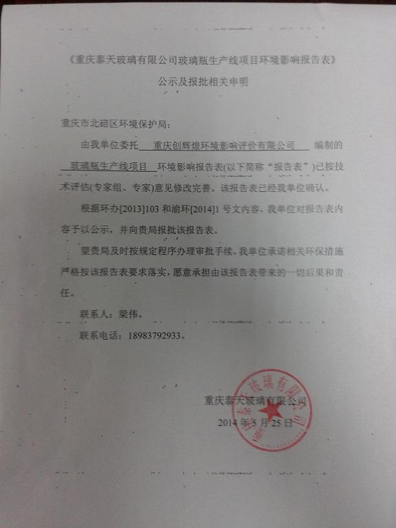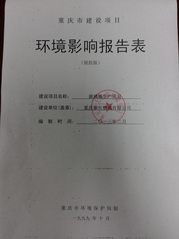 重庆泰天玻璃有限公司玻璃瓶生产项目环评报告表2591