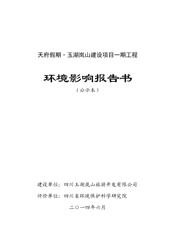 四川玉湖岚山旅游开发有限公司天府假期·玉湖岚山建设项目一期工程_32418.pdf