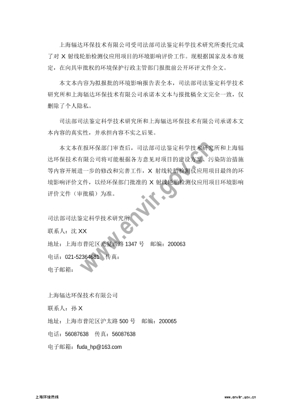 司法部司法鉴定科学技术研究所X射线轮胎检测仪应用项目环境影响评价报批前公示1361.pdf