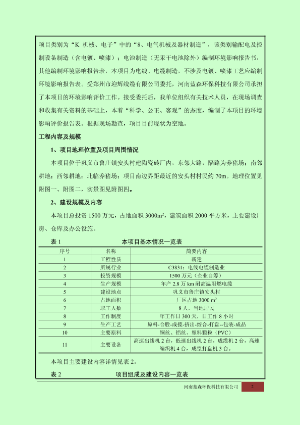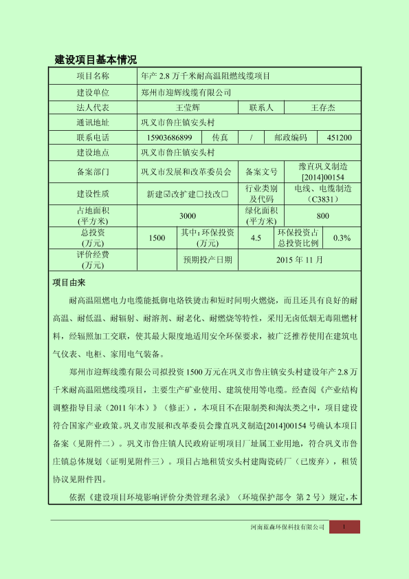 鲁庄镇安头村-年产2.8万千米耐高温阻燃线缆项目报告表7427