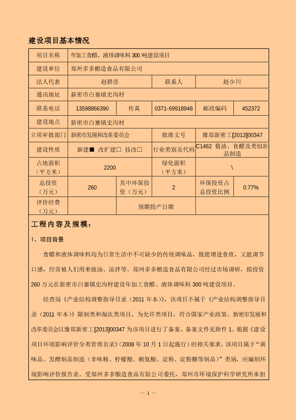 2、新密市白寨镇-郑州多多酿造食品有限公司年加工食醋、液体调味料300吨建设项目报告表(1)9073