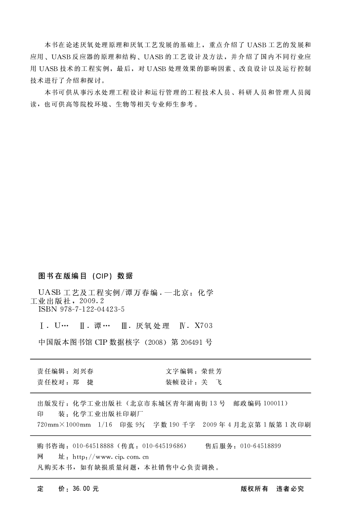 《UASB工艺及工程实例》谭万春2009 化学工业出版社 公开