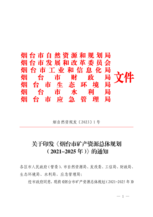 烟台市矿产资源总体规划(2021-2025年)烟自然资规发〔2023〕1号.pdf