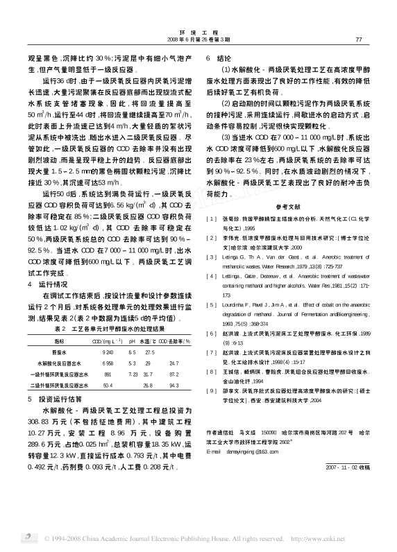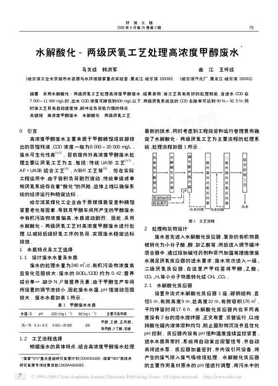 水解酸化_两级厌氧工艺处理高浓度甲醇废水 公开
