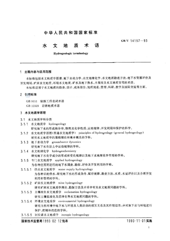 水文地质术语 GB_T 14157-93 公开