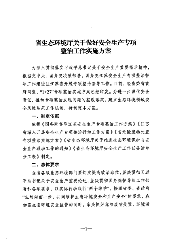 苏环办〔2020〕16号关于印发《省生态环境厅关于做好安全生产专项整治工作实施方案》的通知