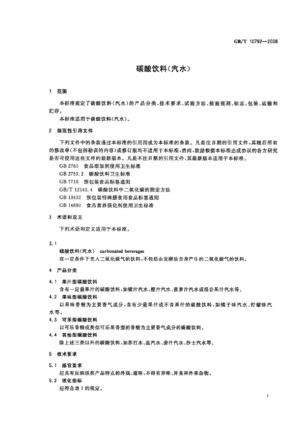 碳酸饮料(汽水)GB_T 10792-2008 公开