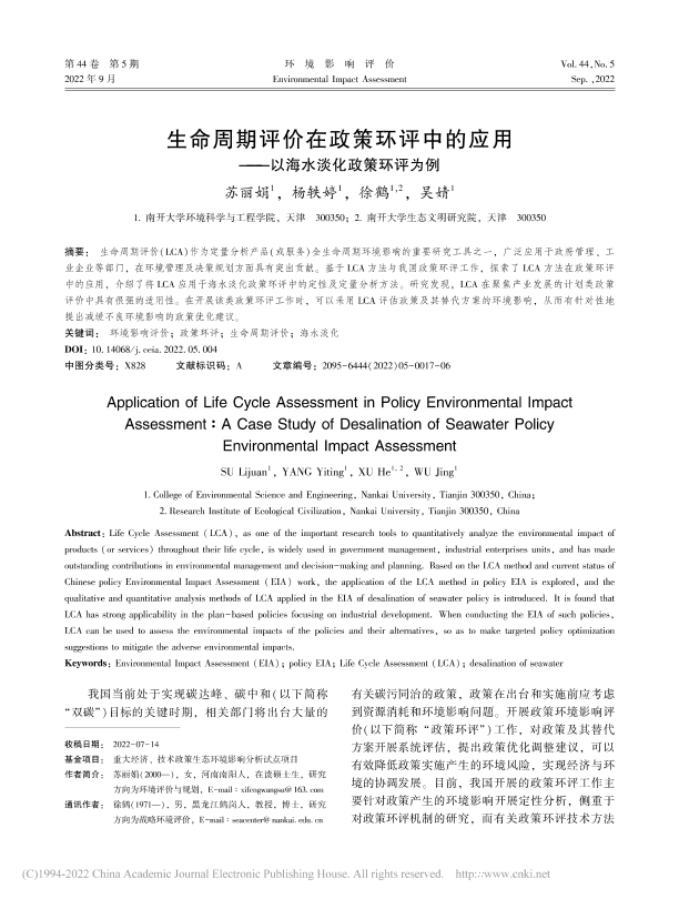 生命周期评价在政策环评中的应用—以海水淡化政策环评为例_苏丽娟