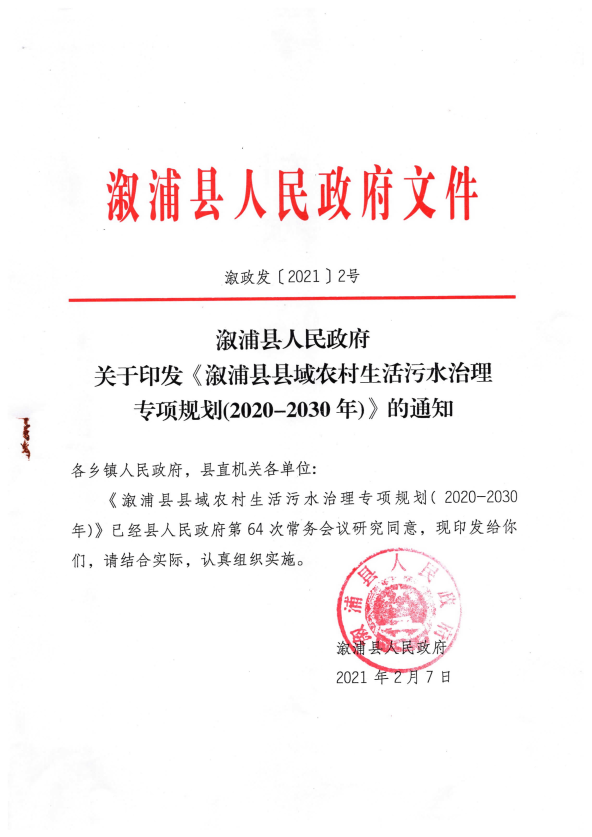 溆浦县县域农村生活污水治理专项规划(2020-2030年) 公开