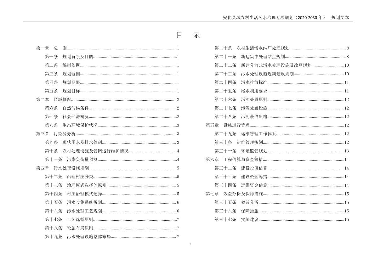 安化县域农村生活污水治理专项规划(2020-2030年) 公开