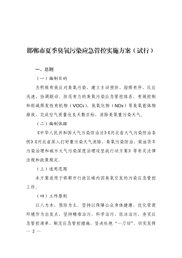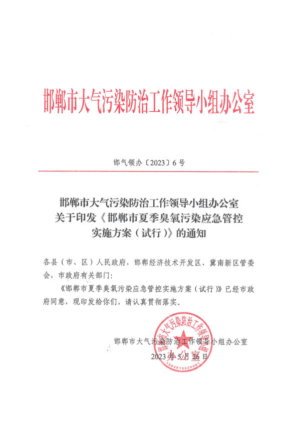 邯气领办〔2023〕6号关于印发《邯郸市夏季臭氧污染应急管控实施方案(试行)》的通知