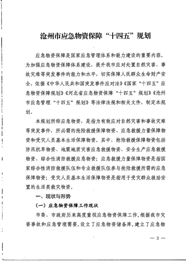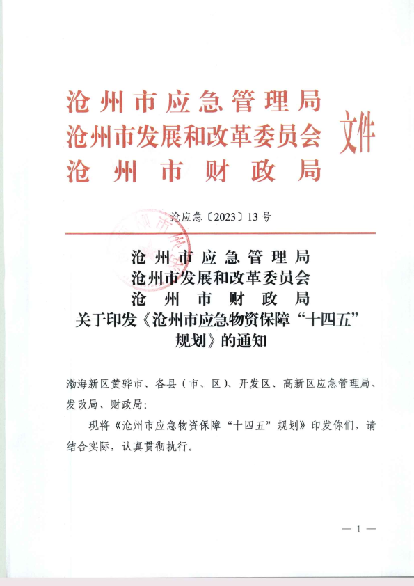关于印发《沧州市应急物资保障“十四五”规划》的通知(沧应急[2023]13号)