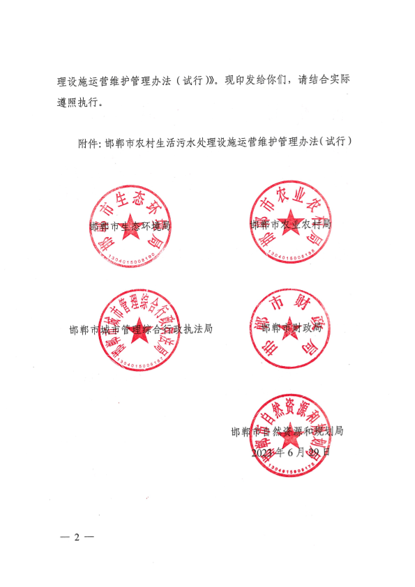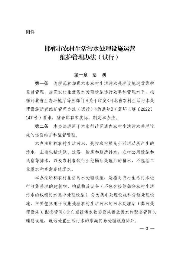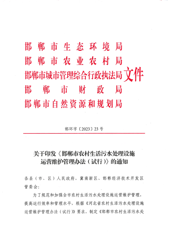 邯环字〔2023〕23号关于印发《邯郸市农村生活污水处理设施运营维护管理办法(试行)的通知》