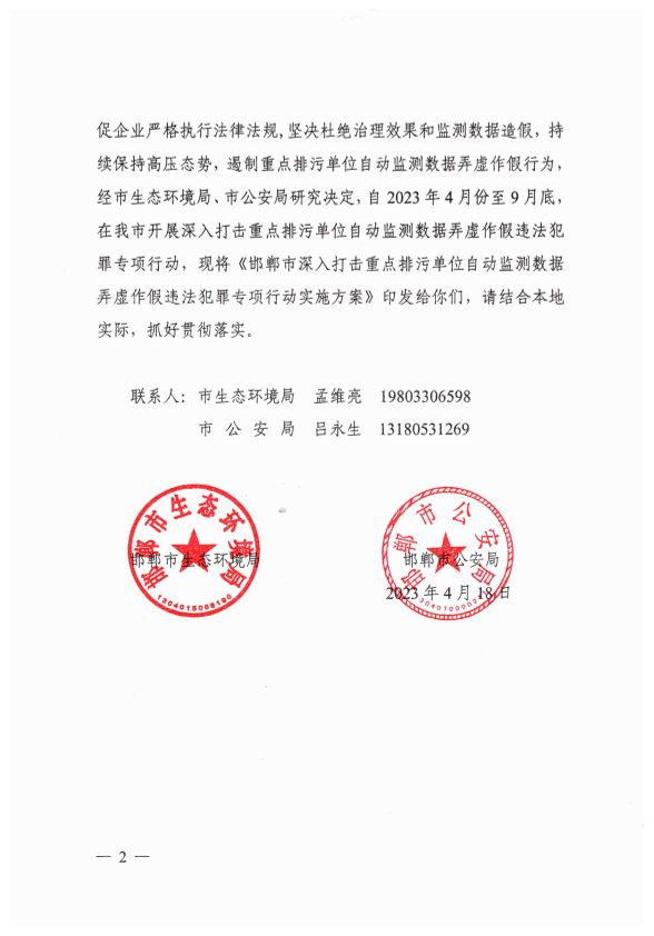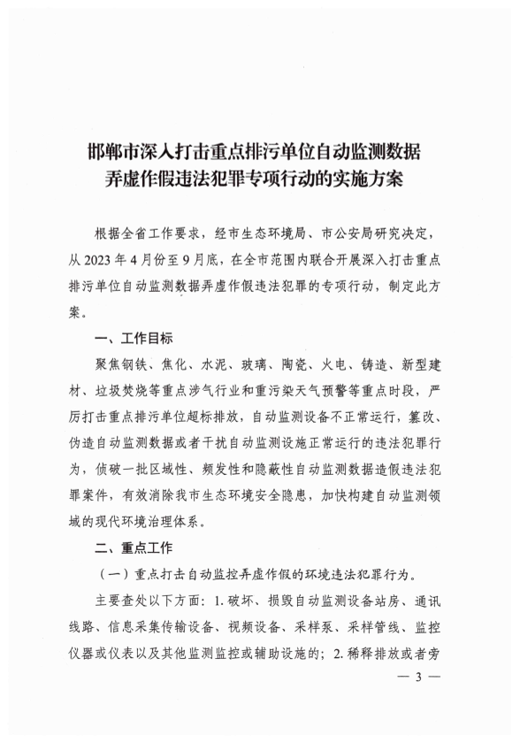 邯环字〔2023〕13号邯郸市生态环境局邯郸市公安局关于印发《邯郸市深入打击重点排污单位自动监测数据弄虚作假违法犯罪专项行动实施方案》的通知