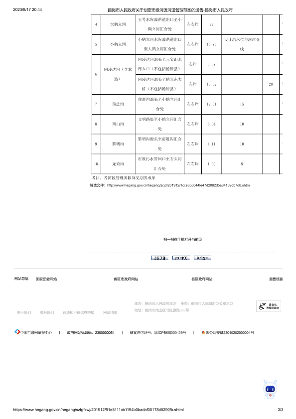 鹤岗市人民政府关于划定市级河流河道管理范围的通告(鹤政规[2019]11号)