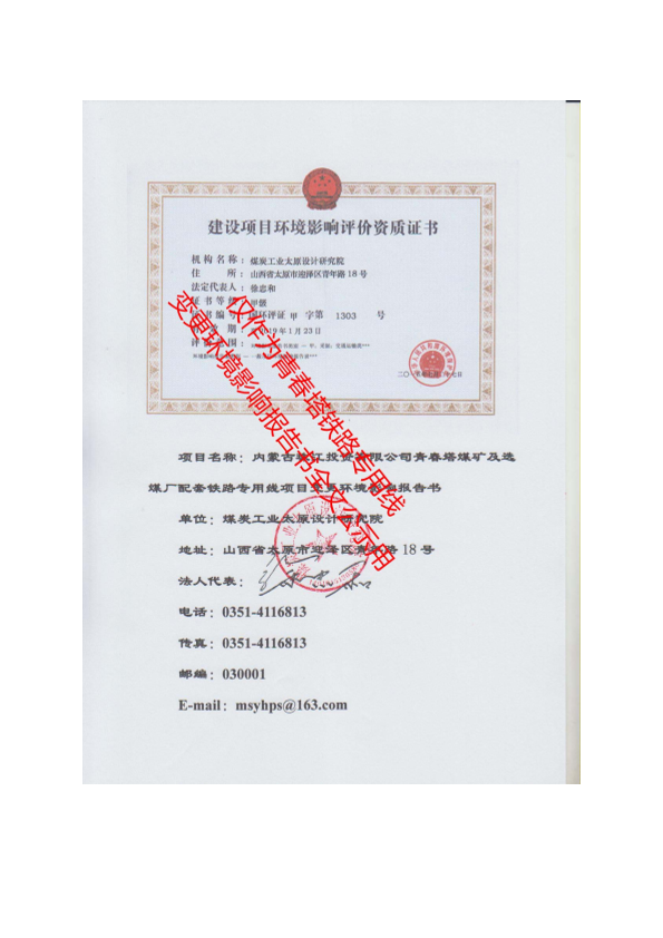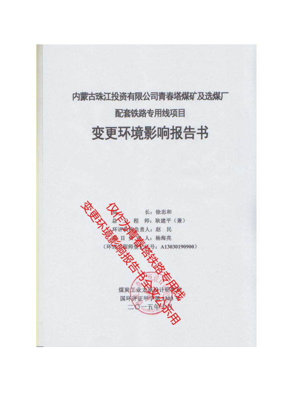 内蒙古珠江投资有限公司青春塔煤矿及选煤厂配套铁路专用线项目变更4492