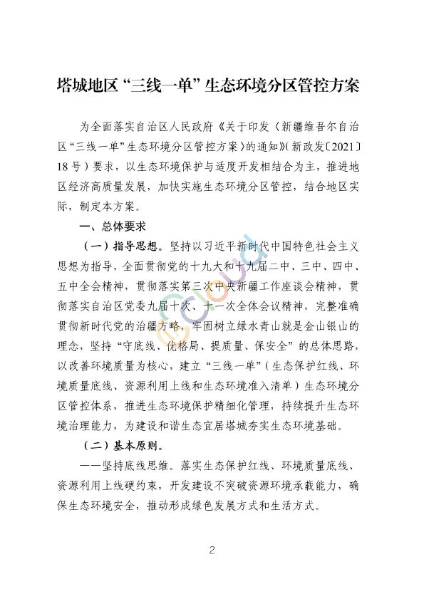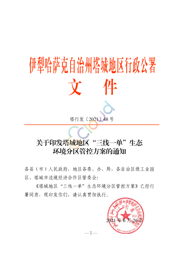 关于印发塔城地区“三线一单”生态环境分区(塔行发[2021]48号)