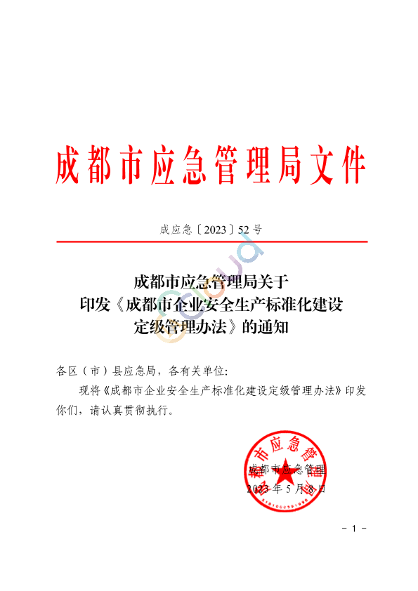 关于印发《成都市企业安全生产标准化建设定级管理办法》的通知.pdf