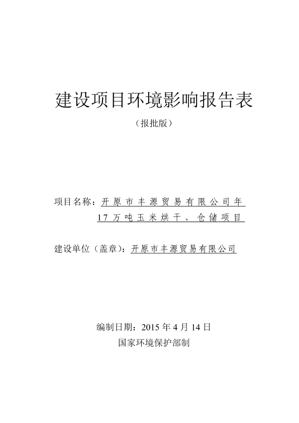 开原市丰源贸易有限公司年17万吨玉米烘干、仓储项目8883 公开