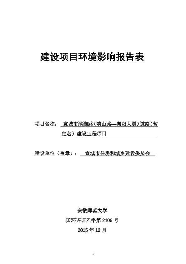 《宣城市住房和城乡建设委员会宣城市滨湖路(响山路—向阳大道)道路(暂定名)建设工程项目环境影响报告表a10976a7566.pdf