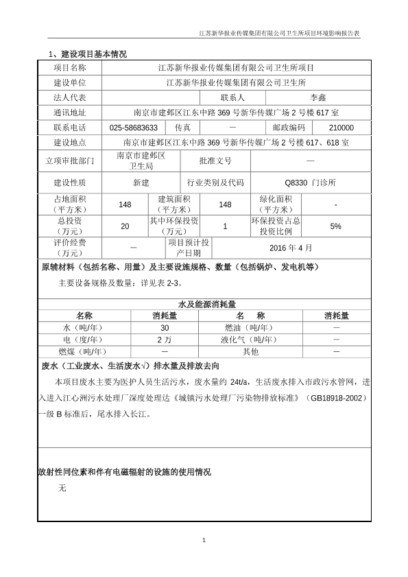 江苏新华报业传媒集团有限公司卫生所项目环境影响报告表全本公示2318.pdf