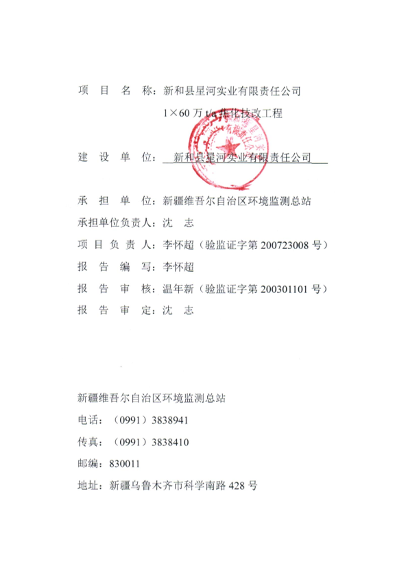 新和县星河实业有限责任公司1×60万t_a焦化技改工程