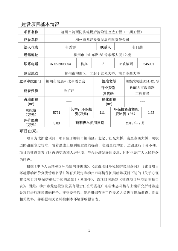 1柳州市河西防洪堤堤后抢险道改造工程(一期工程)建设项目环境影响报告表审批 _752418.pdf