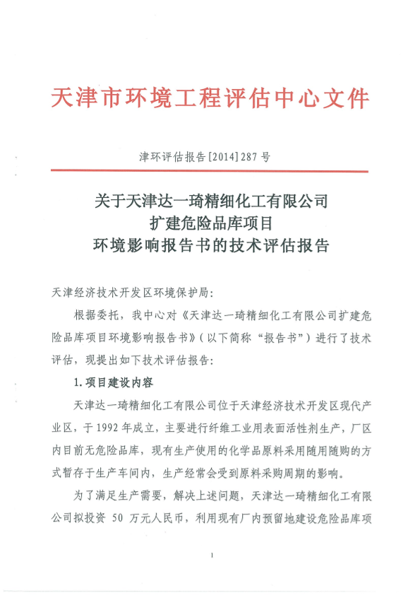 天津达一琦精细化工有限公司扩建危险品库项目环境影响报告书受理情况公示-天津经济技术开发区环境保护局5797.pdf