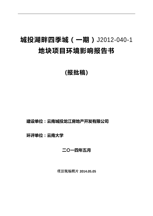 5、昆明市盘龙区城投湖畔四季城一期(j2012-040-14)