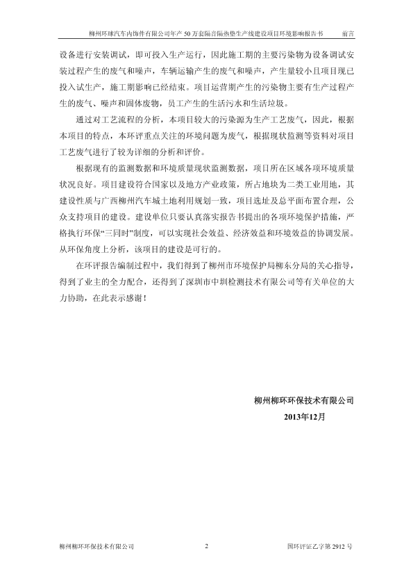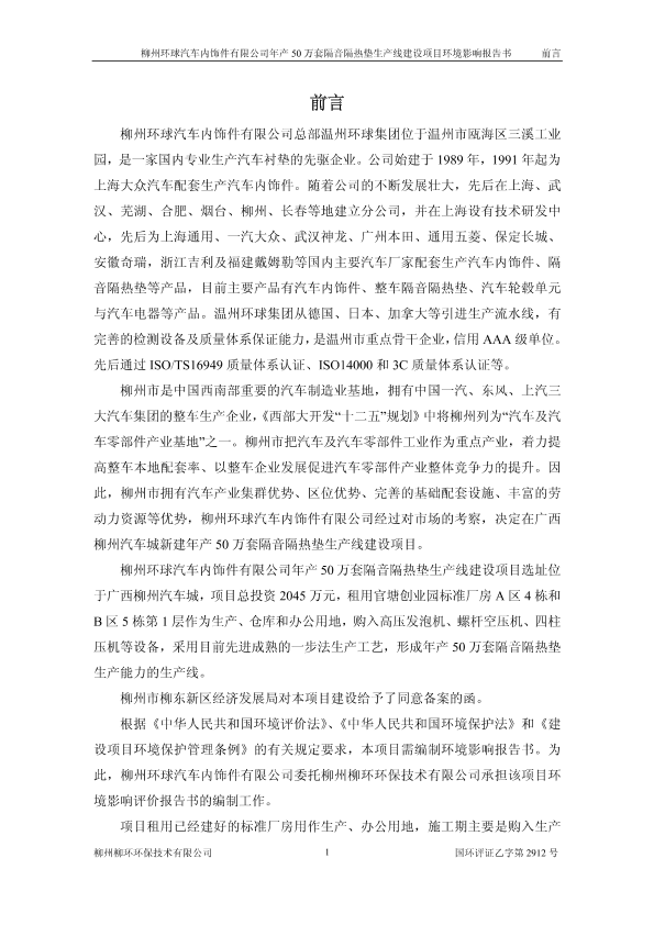 柳州环球汽车内饰件有限公司年产50万套隔音隔垫生产线建设项目环境影响报告书审批 _758412.pdf
