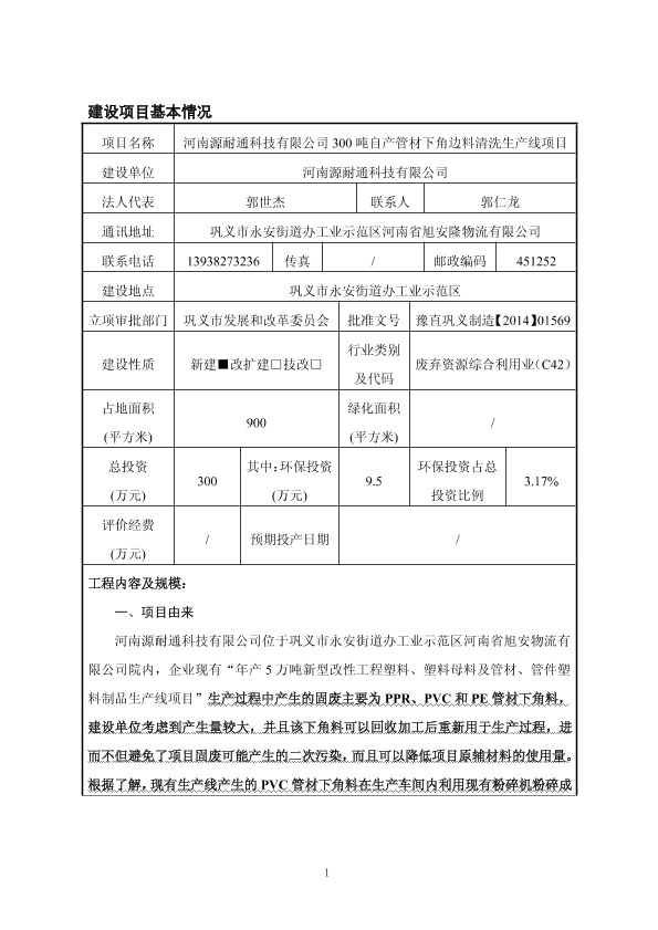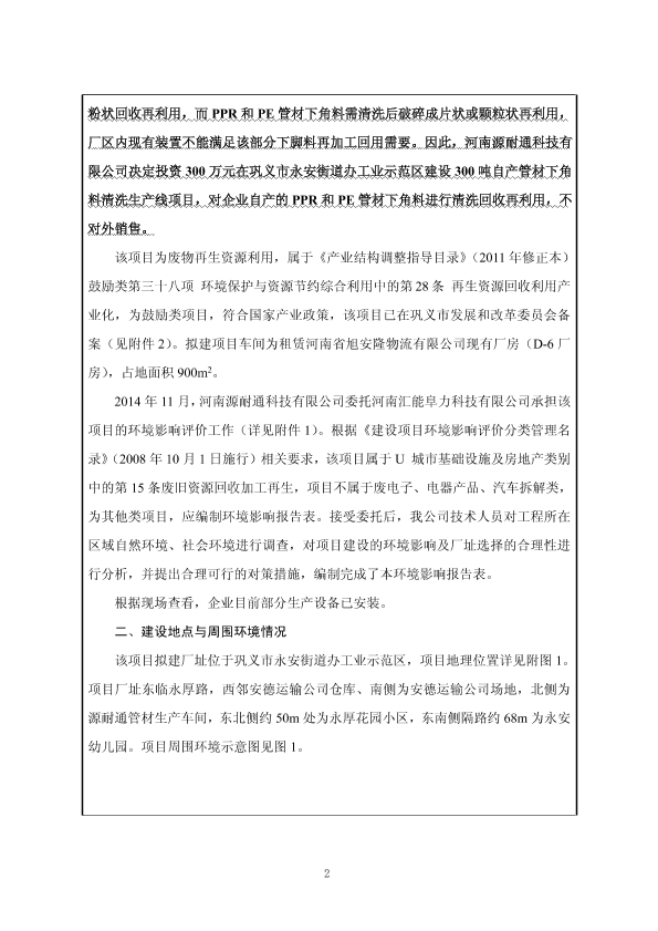 巩义市永安街道办-300吨自产管材下脚料清洗生产线项目报告表1696.pdf
