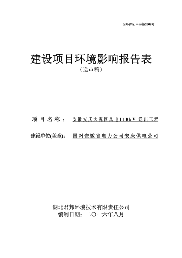 [受理公示]《安庆三500kv变电站220kv送出工程环境影响报告表》、《安庆大观风电场110kv送出工程环境影响报告表》a61030a5427
