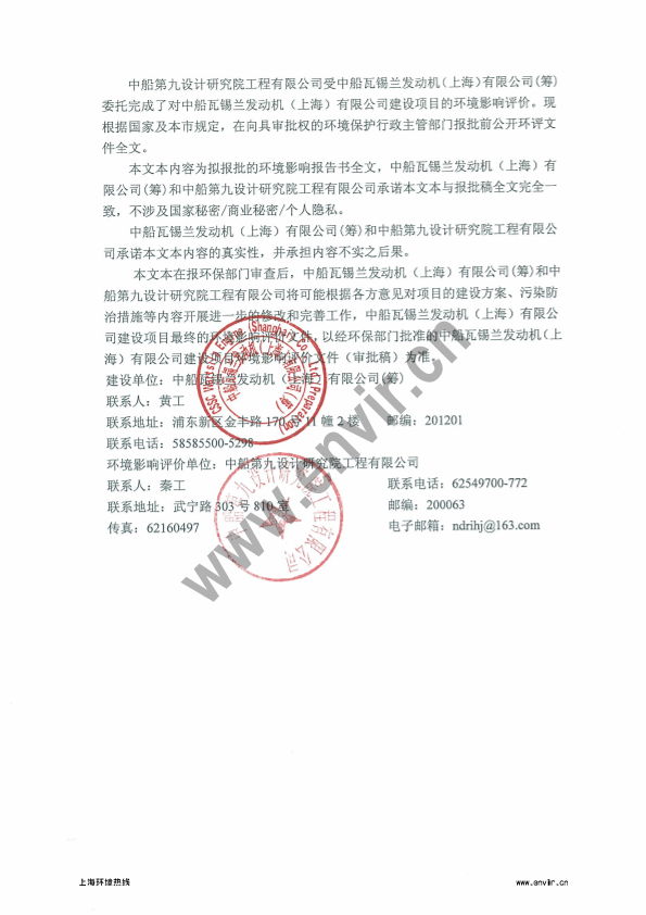 中船瓦锡兰发动机(上海)有限公司建设项目环境影响评价报批前公示2765