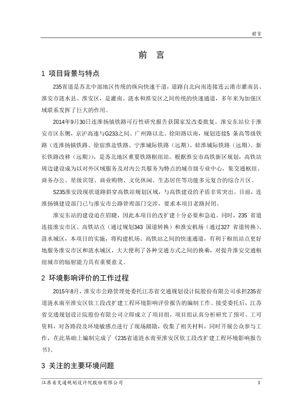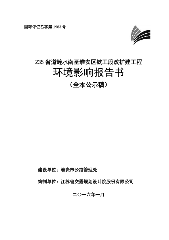 235省道涟水南至淮安区钦工段改扩建工程环境影响评价全本公示2459 公开