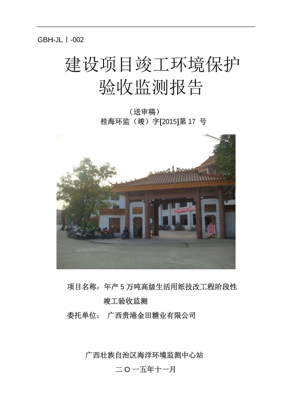 广西贵港金田糖业有限公司年产5万吨高级生活用纸技改工程竣工环境保护验收983788456