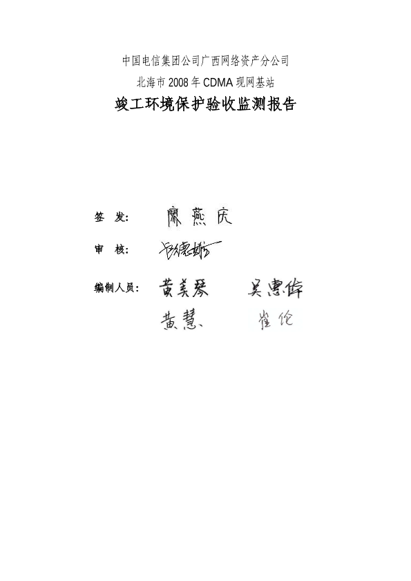 中国电信集团公司广西网络资产分公司北海市2008年cdma现网基站环境保护设施竣工验收审批667034316.pdf