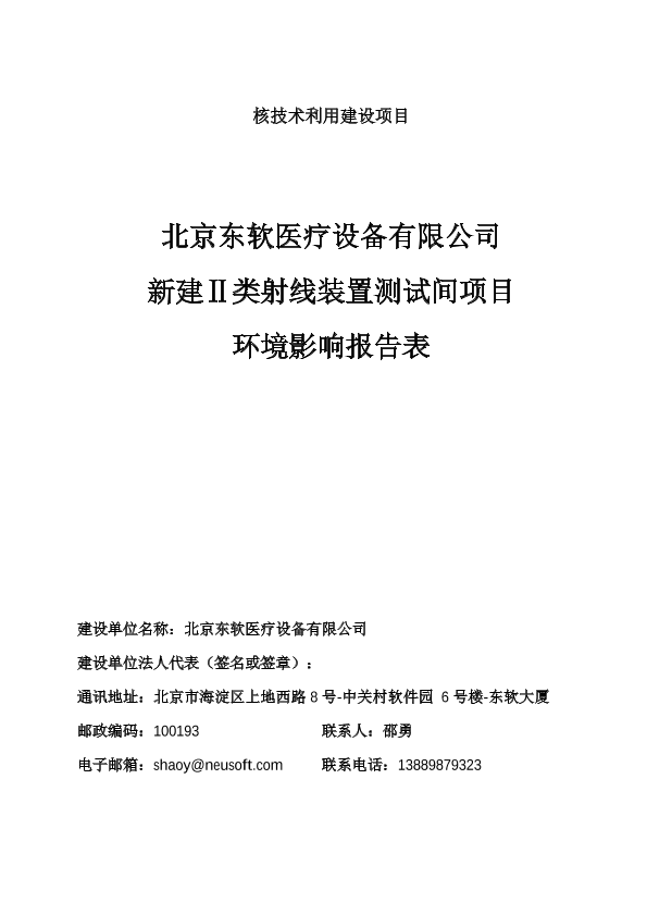 北京东软医疗设备有限公司新建Ⅱ类射线装置测试间项目3269.pdf