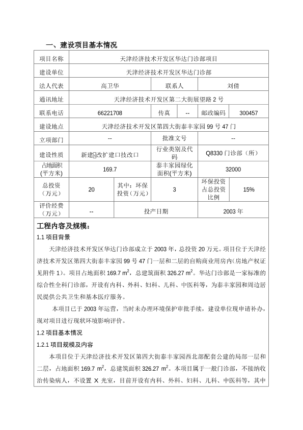 天津经济技术开发区华达诊所项目环境影响报告表受理情况公示-天津经济技术开发区环境保护局4041.pdf