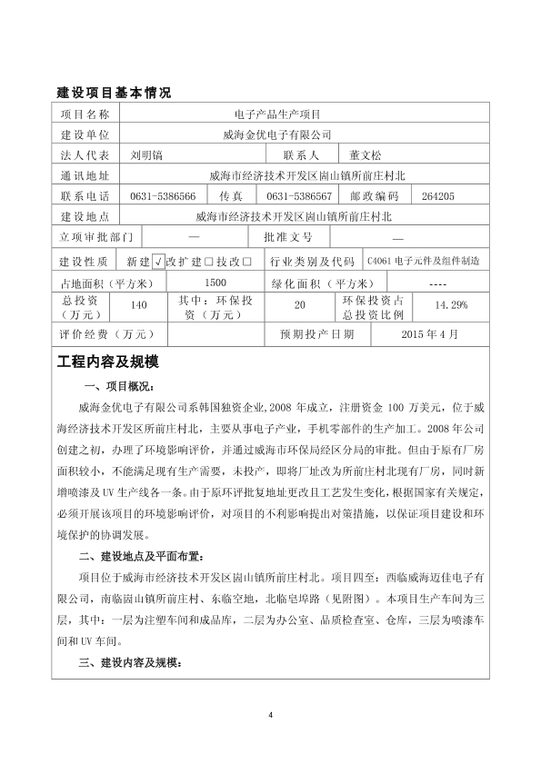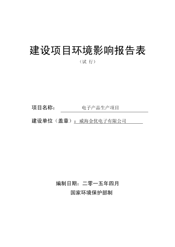 威海市环境保护局经区分局关于威海金优电子有限公司电子产品生产项目受理情况的公示_1226445.pdf