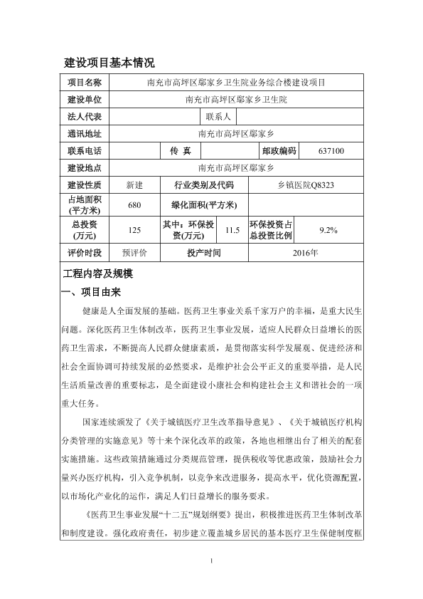 南充市高坪区鄢家乡卫生院业务综合楼建设项目4250 公开