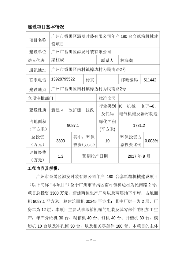 广州市番禺区添发时装有限公司年产180台套纸箱机械建设项目1753