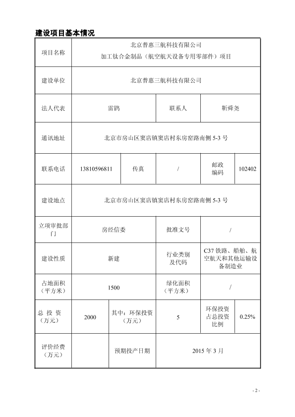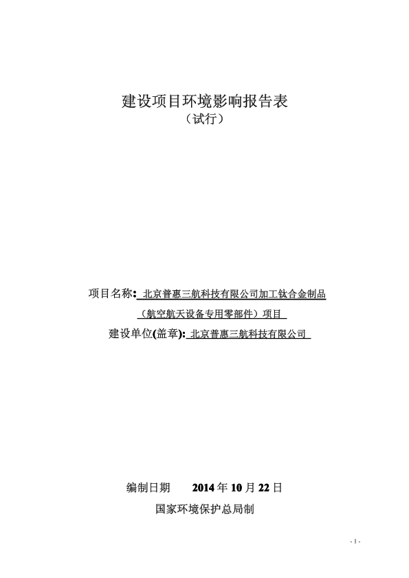 北京普惠三航科技有限公司加工钛合金制品(航空航天设备专用零部件)项目5332.pdf