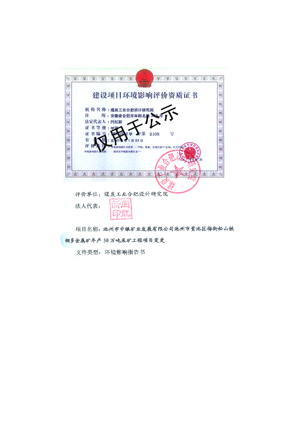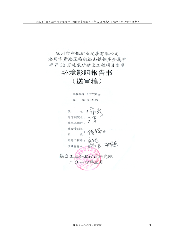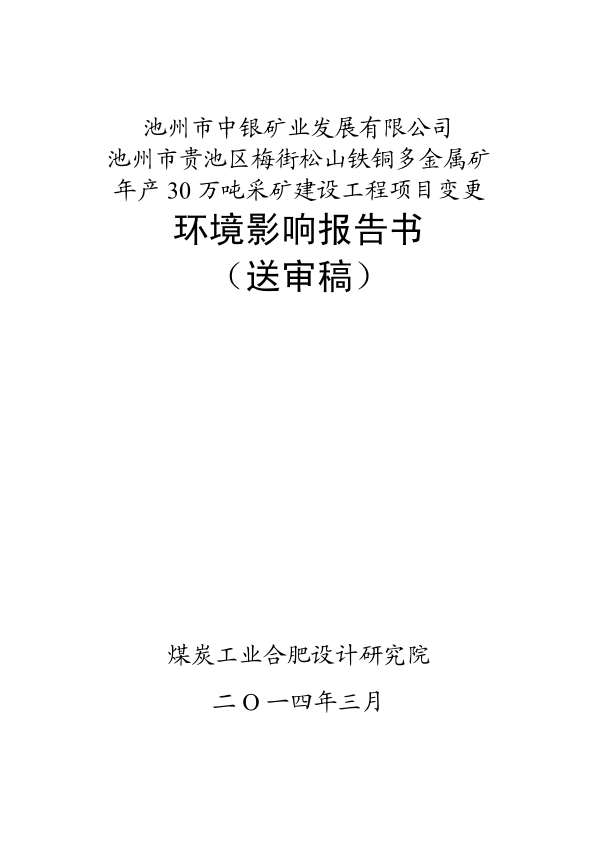 《池州市中银矿业发展有限公司池州市贵池区梅街松山铁铜多金属矿年产30万吨采矿建设工程项目变更环境影响报告书》受理公示 _205096.pdf
