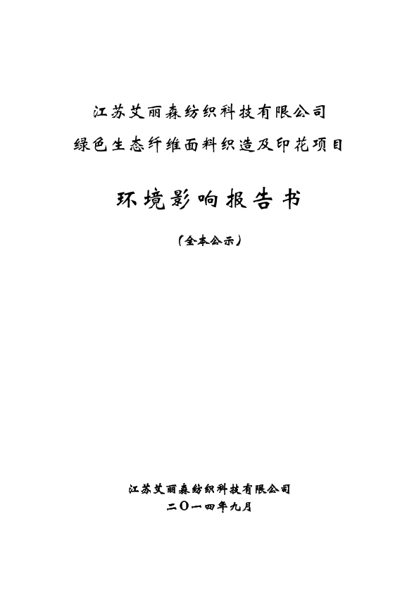 全本公示 江苏艾丽森纺织科技有限公司绿色生态纤维面料织造及印花项目环评
