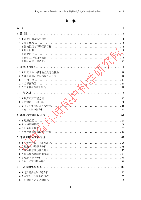 1、新建年产300万套(一期150万套)塑料花洒生产线项目